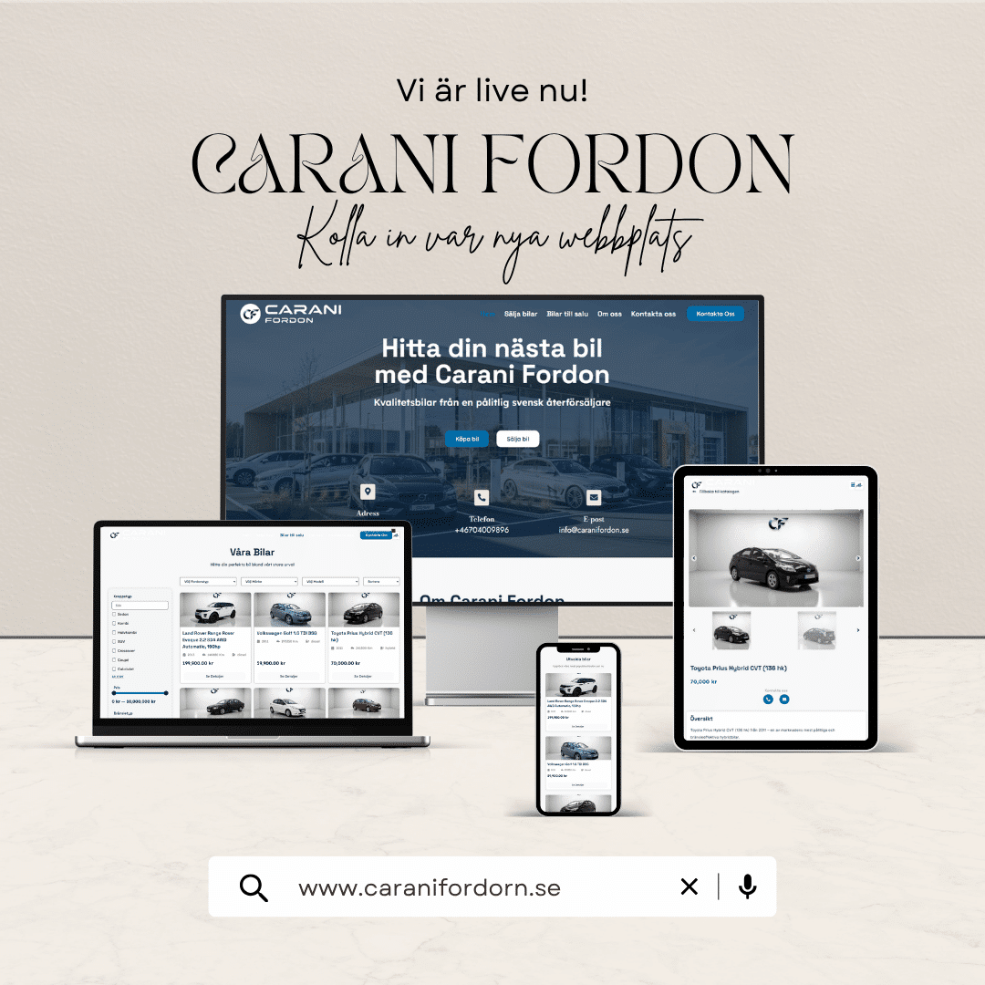 En modern webbplats för ett fordonsföretag med fokus på presentation av fordon och tjänster.